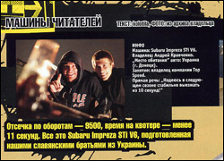 ![]() | Журнал Форсаж, Москва. 2007 год. Статья в журнале Форсаж о нашем автомобиле, субару импреза STI v6. В статье описание авто, участие в соревнованиях и пр. информация. смотреть часть 1 смотреть часть 2 |