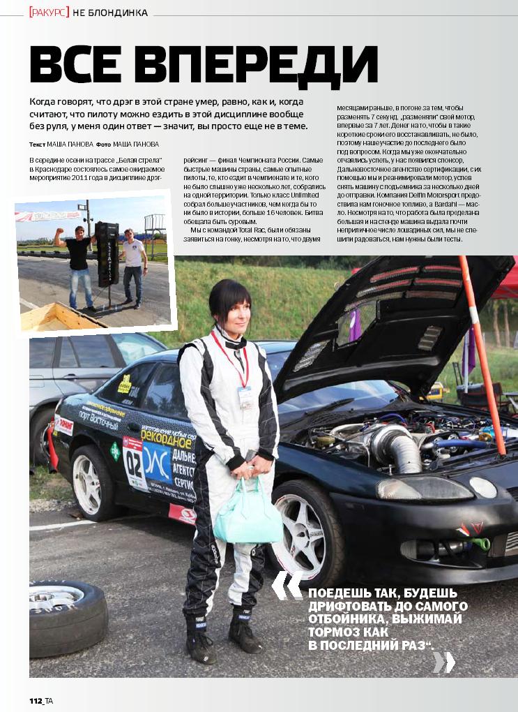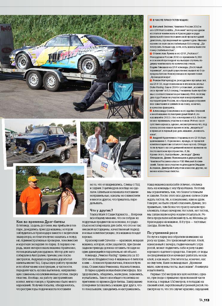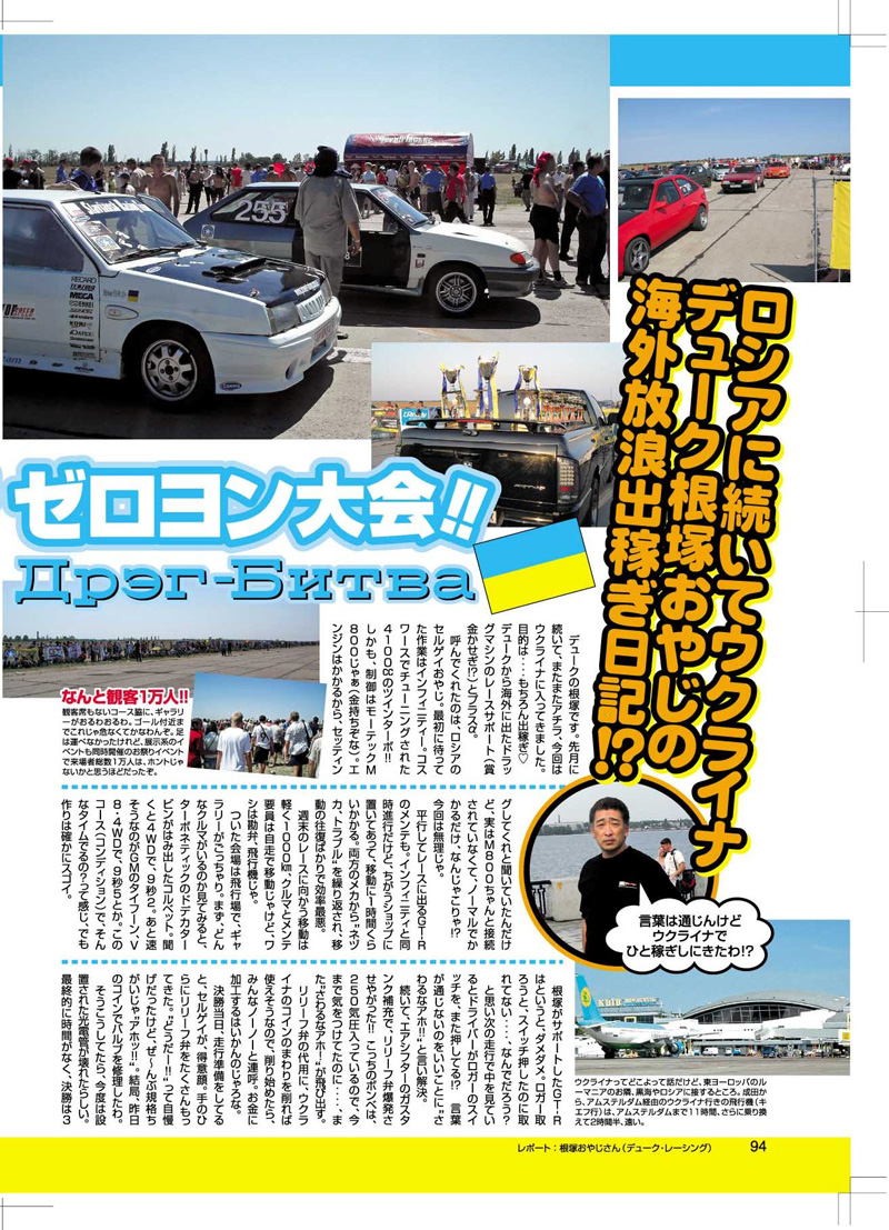 ![]() | Статья в японском журнале о проведенной Драг Битве в Бердянске. На фото Андрей Кравченко и Недзука из компании Duke Racing! смотреть часть 1 смотреть часть 2 |